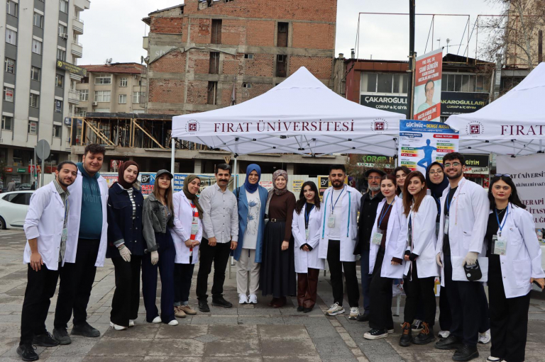 Fırat Üniversitesi Sağlık Bilimleri Fakültesi Fizyoterapi ve Rehabilitasyon Bölümümüzk, 8 Nisan Türkiye Fizyoterapistler Günü kapsamında Elazığ Postane Meydanı’nda farkındalık etkinliği gerçekleştirdi. Etkinlikte vatandaşlara el kavrama kuvveti ölçümü ve denge testleri uygulanarak kas gücü ve düşme riski hakkında bilgilendirme yapıldı. Öğrencilerimiz ve öğretim üyelerimizin katkılarıyla yürütülen etkinlikte, sağlıklı yaşam, düzenli egzersiz ve hareketin önemi vurgulanırken, koruyucu fizyoterapinin hastalıkları önlemedeki rolüne dikkat çekildi. Bölümümüz, toplum temelli sağlık hizmetleri ve farkındalık çalışmalarını sürdürmeye kararlılıkla devam edecektir.